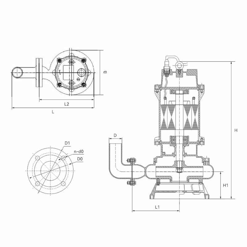 2 150WQ180-11-11S 180 11 11 380 150 1450 795 325 566 485 1017 212 Φ150 Φ225 4-Φ17.5 Φ265